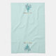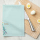 Beautiful kitchen towel with an original digital painting by Leslie Sigal Javorek of a swirly turquoise Christmas tree w/ violet ornaments on a Trompe L'oeil (trick of the eye) background illusion of fine bone china & greater depth.