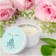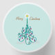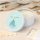 This beautiful candle favor featuring an original digital painting by Leslie Sigal Javorek of a swirly turquoise Christmas tree w/ violet ornaments on a Trompe L'oeil (trick of the eye) background illusion of fine bone china & greater depth.