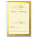 An elegant and classy place card featuring faux gold foil swirly flourishes on an ivory background with a classic gold foil border frame. Comes in 5 colors. Matching invitations, table number cards, RSVPs, cocktail napkins & more available. For questions or requests for other items featuring this design, please contact: cheryl@cheryldanielsart.com. "Swirly Flourish with Frame" by Cheryl Daniels © 2015.