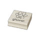 Cute personalized name and paw print wooden rubber stamp. The paw print is designed to look like it was drawn with one continuous swirly line which ends in a heart shape within the paw base. The custom name is printed in a lovely cursive script in a matching stale to that of the paw.