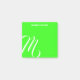 These post it notes feature a swirly monogram and custom name in white on a bright neon green background. Click Personalize this Template to customize these notes with an initial and name.