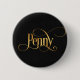 Swirly Script Calligraphy Penny Gold on Black Pinback Button