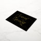 Black and gold Grand opening invitation postcard with a swirly script and gold confetti for your business, perhaps a store, a restaurant, or a beauty salon. Black grand opening postcard invitation with gold foil script and confetti.