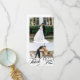 Thank you photo card for your wedding with two photos and Thank You written in a swirly black calligraphy script. Add a thank you note by hand on the other side which features faint gray lines.