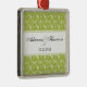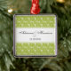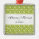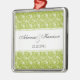 What a pretty way to show off your couplehood! A green swirly vine damask background shows off your names along with the year or any other message you like. You can use it as an ornament, but think outside the box to use it as a save the date reminder, a pendant, a light/fan/blind pull, hang it from your rear view mirror or in your office.