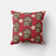 A burgundy red pillow with a Swiss chalet and edelweiss flower pattern .