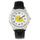 A fun watch with a cartoon illustration of 2 Swiss cheese pieces . Designed for kids who are just starting to learn how to read the time .