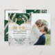 Elegant, rustic, and country tropical beach Swiss Cheese Monstera leaves on rustic white wood and lace with faux printed gold foil typography summer Save-the-Date wedding Postcards. This classic and sophisticated design is perfect for the trendy and stylish marrying couple. Personalize with your own message on the front as well as a customized monogram initial on the back. All photo print design.
