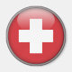 A fridge magnet featuring the Swiss Flag - white cross on red background.