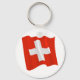 This design is a Swiss flag. The Swiss flag is fluttering in the wind. This Swiss flag design looks great on this Keychain