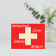 A vintage looking postcard with the Swiss flag and the words "Switzerland , Suisse , Schweiz ,Svizzera" written in white letters .