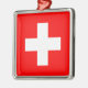 This design features the flag of Switzerland (officially the Swiss Confederation), which is a landlocked country in the middle of Europe. It is a federal republic, divided into 26 cantons; its capital city is Bern, while its largest city is Zurich. The country borders Germany to the north, Austria and Lichtenstein to the east, Italy to the south and France to the west. While most of the landmass is made up of the Alps, most of Swiss population lives on the plateau, where most major cities and economic centres are located, such as Zürich, Geneva and Basel. Switzerland has four official languages: German, French, Italian and Romansh, a less commonly spoken Romance language that is native to the country. The emblem of the Red Cross is the Swiss flag with switched colours.