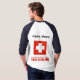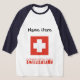 The Swiss Flag with the word SWITZERLAND underneath in snow-capped letters. The flag of Switzerland is a white square with a red cross in the center. Above the flag is a place for your name, so you can personalize your look or create a customized gift.