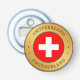 The Switzerland flag is inset into a rounded faux gold ring. The word "Switzerland" features at the top and bottom of the design, and are of a pressed effect. The pair of three decorative stars across from each other, are also designed with a pressed effect.