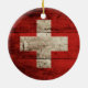 Switzerland Flag on Old Wood Grain Ceramic Ornament