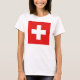The front of this t-shirt boldly displays the Swiss flag with its distinctive white cross centered on a red background. This is matched at the back by an attractive map of Switzerland.