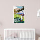 Travel poster showing a girl waving to passengers on train going past a mountain village in Switzerland. The aspect ratio of the image is 2:3. Please note that our restored posters are the best on Zazzle.
