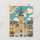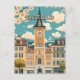 This travel postcard, in digital illustration style, is inspired by the architecture of Swiss cities.