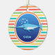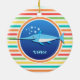 Swordfish; Bright Rainbow Stripes Ceramic Ornament