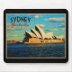 This vintage style design features the Sydney Opera House in Australia. Beautiful blue ocean and sky.