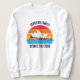 Personalized Australia vacation sweatshirt featuring the Sydney opera house in front of an Australian sunset above cool blue water. Cute custom family trip keepsake.