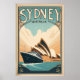 • This retro-style travel poster captures the iconic beauty of Sydney, Australia, featuring the world-famous Sydney Opera House and a vintage ocean liner cruising through the harbor. The artwork evokes a sense of nostalgia with its vintage color palette and bold typography, perfect for travel enthusiasts or those who appreciate classic designs.