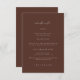 Introducing our exquisite Espresso Brown Minimal Wedding Invitation Collection, a true embodiment of elegance and sophistication. Crafted with meticulous attention to detail, this collection showcases a captivating blend of espresso brown hues and minimalist design elements, creating a timeless and refined aesthetic that is sure to impress your guests. Each invitation in this collection features a beautifully handwritten script, adding a personal touch and a sense of intimacy to your special day. The rich espresso brown color palette exudes warmth and luxury, while the minimalist design ensures a modern and chic look.