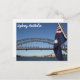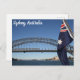 This postcard features a photo of Sydney, including the Harbour Bridge and Sydney Opera House, taken from a ferry boat.