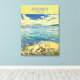 Travel print of Sydney Harbour skyline in an arty modern colourful style of travel art print. Blue sky and blue sparking water on a hot Summer's day in the city of Sydney, Australia. From an original photo.
