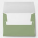 Modern wedding envelopes featuring a contemporary typographic design with "the wedding of" in elegant script typography. Below are your names and return address in a simple and minimal layout. The color theme is sage green and may be changed the design editing tool.
