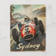 A striking vintage design featuring Sydney, Australia, with its iconic landmarks, alongside a classic racing car. The artwork beautifully combines the modern architectural marvels of the Sydney Opera House and Harbour Bridge with the sleek elegance of a retro racing car, creating a scene that exudes both sophistication and nostalgia. This design captures the vibrant spirit and timeless charm of Sydney.