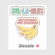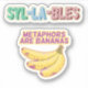 I taught the graphic illustration of the word syllables split up into its phonetic groups. Syllable is split into three syllables. A design with a skull, English language theme for teachers or students.