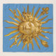 Symbol of Louis XIV the Sun King (Roi Soleil) on the golden gate of Chateau de Versailles with blue sky background