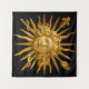 Symbol of Louis XIV the Sun King (Roi Soleil) on the golden gate of Chateau de Versailles with black background