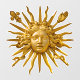 Symbol of Louis XIV the Sun King (Roi Soleil) on the golden gate of Chateau de Versailles