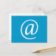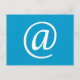 A blue postcard with the @ symbol printed on it.