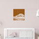 An illustration of Syme hut on Fathoms Peak, with Mt Taranaki in the background. This design is drawn in a brown monochrome and has the Matariki stars above it in the sky. A design for anyone who loves hiking and tramping in New Zealand.