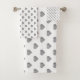 Symmetric Small Concrete Gray Hearts on White Bath Towel Set