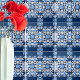 Beautiful elegant decorative tile design featuring a symmetrical geometric pattern composed of blue and white ornaments.