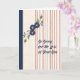 Sympathy Card for loss of son. The design is tan stripes on the right side where the writing is in a dark blue. On the left side there are illustrated blue flowers, leaves and a dark blue border. Thanks to the hungryjpeg for some of the elements in the design.