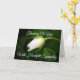 Original photograph of a white rose bud with dew on the petals. The front of the card states "Thinking Of You With Heartfelt Sympathy." Bible Scripture from Philippians 4:7 is included inside and a meaninful sentiment of "Today and always, may loving memories bring you peace, comfort and strength." You can also add more of your own text as you like.