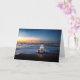 Sympathy card for the loss of a loved one. A memorial candle with a flame and a wreath of flowers on the beach with the waves gently lapping the shore. The sunsets and the stars appear. A condolence memorial card.