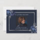 A simple and elegant sympathy thank you card with photo. A dark blue background, a faux silver frame and blue florals. Personalize and add your thank you note.