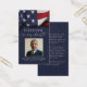Keep the memory of a loved one close with this personalized patriotic prayer card featuring a cherished photo of them framed in faux metallic gold foil, the sentiment FOREVER IN OUR HEARTS, name and dates with an image of an American flag on the front and an editable heartfelt remembrance message on the back in navy blue. With its simple yet elegant classic design and modern script typography, it makes a meaningful keepsake to share at a funeral, memorial service or Celebration of Life and offers comfort and a lasting tribute for family and friends. Its small and portable size of 3.5x2" (wallet-sized) makes it convenient for loved ones to carry it with them as a reminder of your loved one’s life and spirit. Personalization makes each card unique.