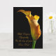 A stately golden arum lily stands lit from the side . A perfect flower to convey words of sympathy.