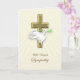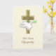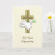 Express your condolences with this elegant sympathy card. A golden cross with a white dove of peace.