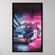 Running from the law never looked so good! Buy this neon infused police car poster today! Cover your walls with style in the retro future Synthwave squad car!