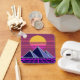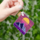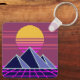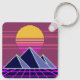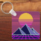 Synthwave sunset over pyramids pixel art keychain