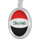 The design for this attractive pendant features a name overlying the Syrian flag, which has been neatly morphed to fit the round shape. The featured name can be changed to any name or text of your choice, creating a personalized gift for someone who loves Syria.