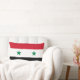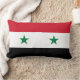 Lumbar throw pillow with flag of the Syrian Arab Republic, a horizontal tricolor triband of red, white and black, with two green stars in the center